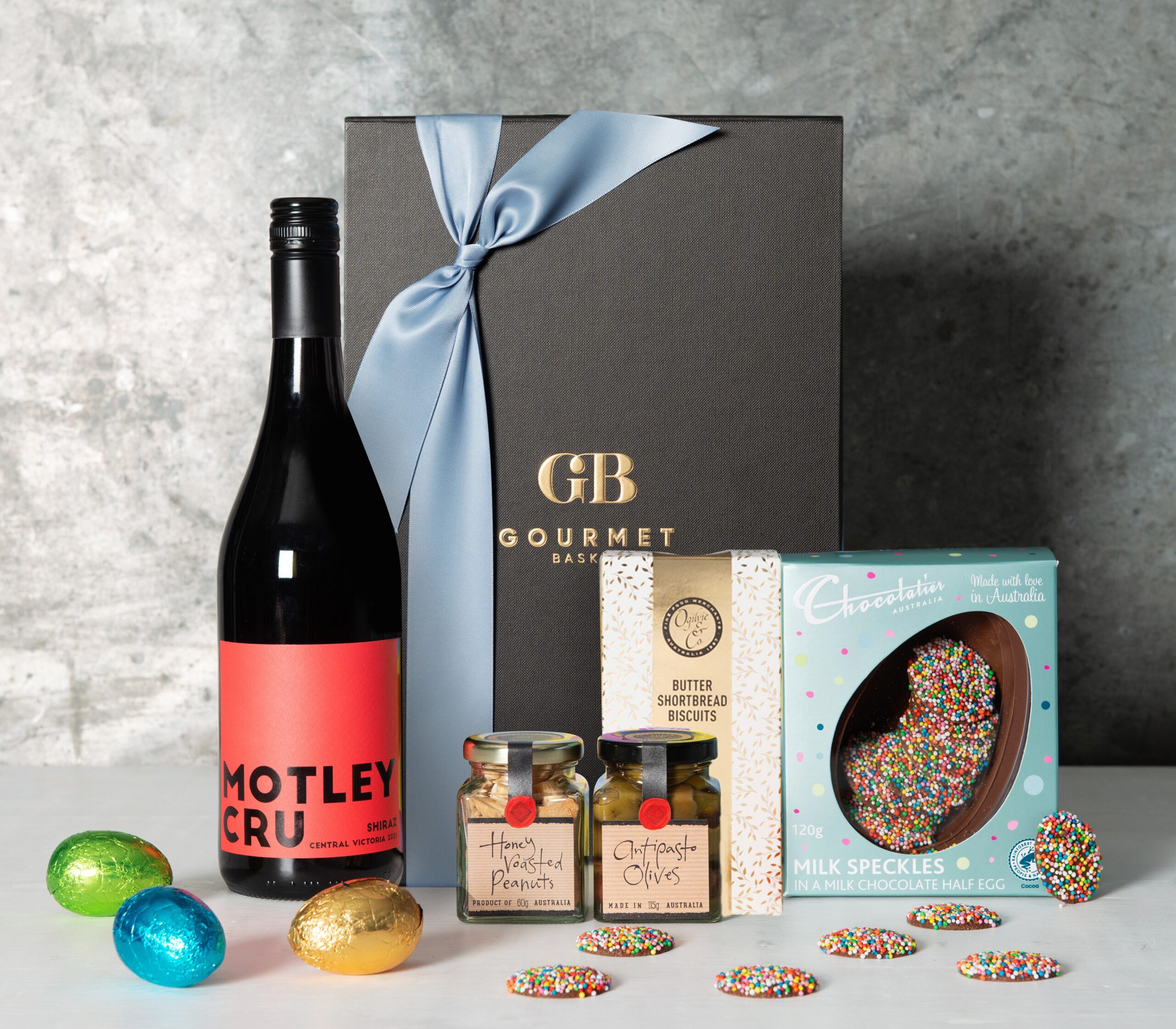 Indulge in the finer things this Easter with our elegant Shiraz and Savoury Gift Hamper! This hamper is packed with a selection of gourmet treats that are perfect for savouring with a glass of wine.